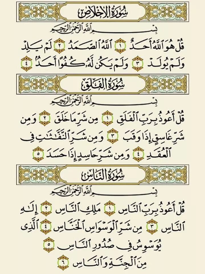 Yang dimaksud dengan 3 surah qul adalah surah Al-Ikhlas, Al-Falaq dan An-Naas. Sebelum tidur amalkan membaca 3 kali (3 Qul) kerana amalan ini dapat: